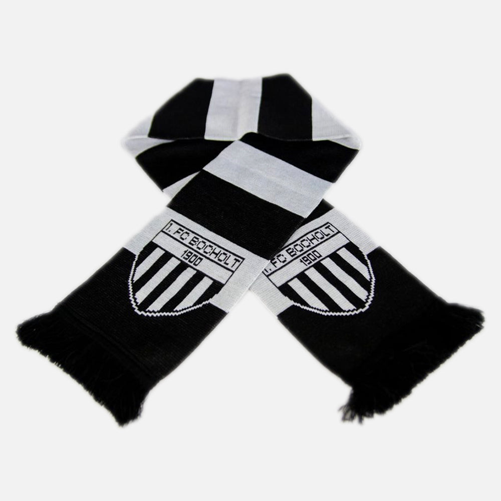 Gestreepte sjaal van hoge kwaliteit met clublogo aan beide uiteinden.