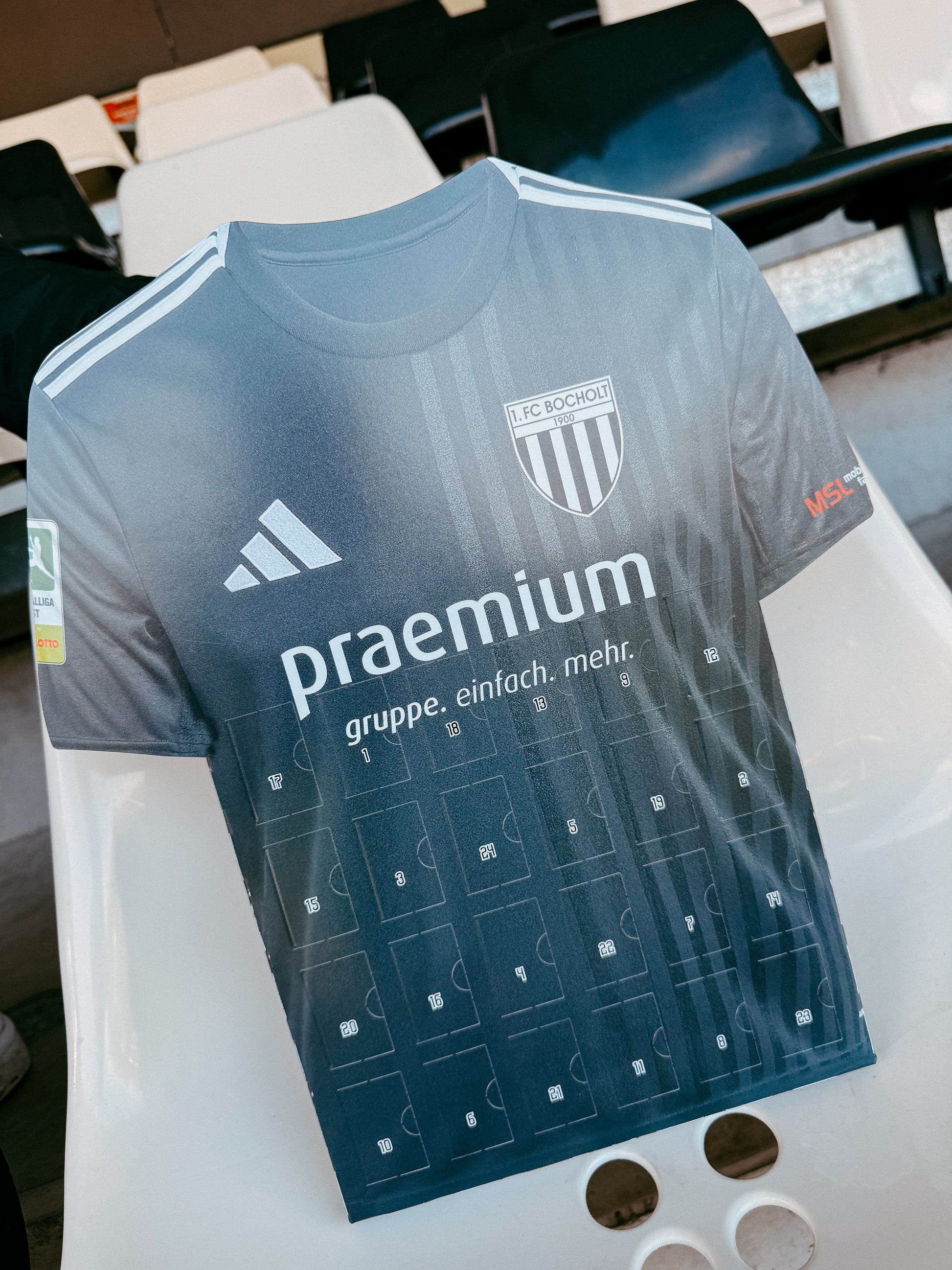 Der Adventskalender im Trikot-Design des 1. FC Bocholt mit leckerer Schokolade hinter jedem Türchen. Ideal für die Vorweihnachtszeit und perfekt für alle FC-Fans.